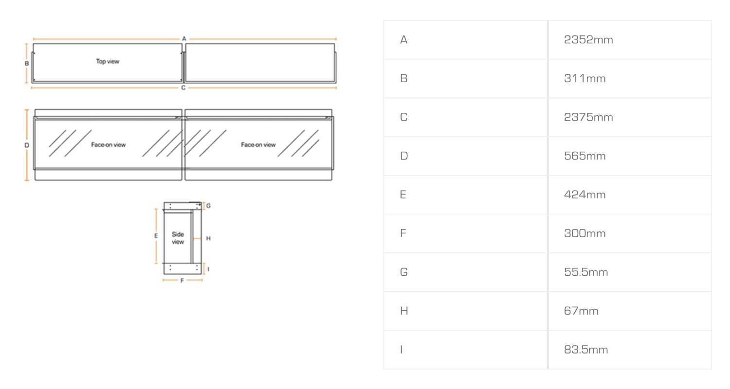 - Размер стекла, (мм): 2352х424