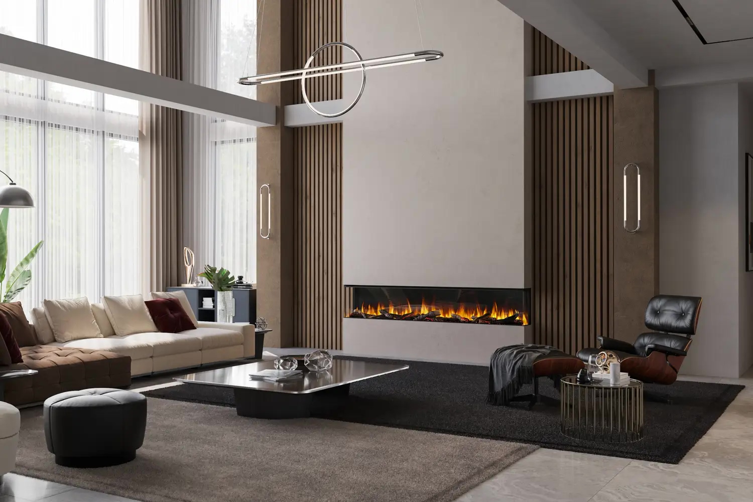 Электрокамин New Forest 2400 with Deluxe Real logs от английской компании BRITISH FIRES – это электрический камин премиум-класса, который впечатляет своим дизайном и функциональностью. Особенность серии New Forest – трехстороннее (панорамное) стекло, создающее объемную и сверхреалистичную визуализацию пламени. Это делает камин неповторимым и выделяет его среди аналогов.
