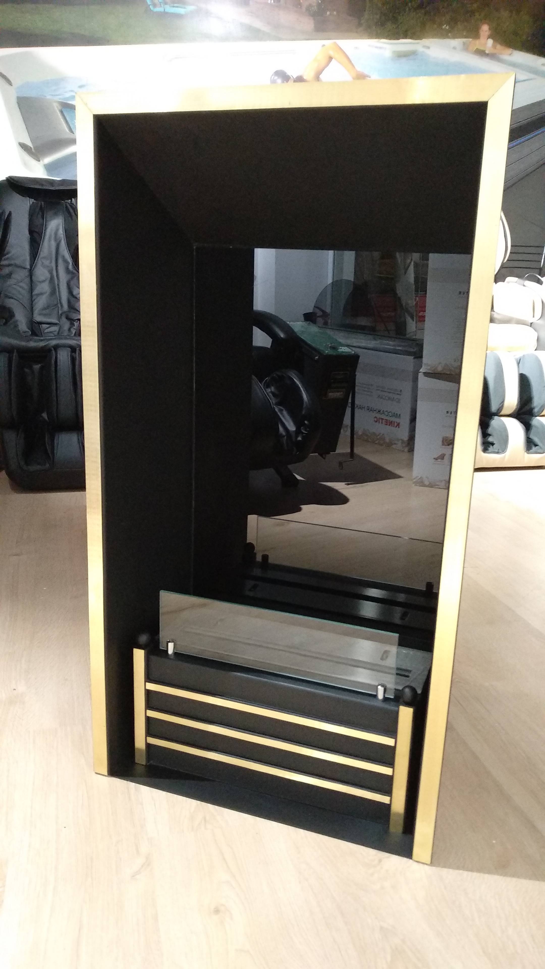 Задача была сделать так, что бы корпус камина "висел" в воздухе и был сделан точно по размером ниши в мебельной полке . Камин повесели на анкерные болты. Установка камина заняла всего пол часа. Клиент доволен и мы тоже.