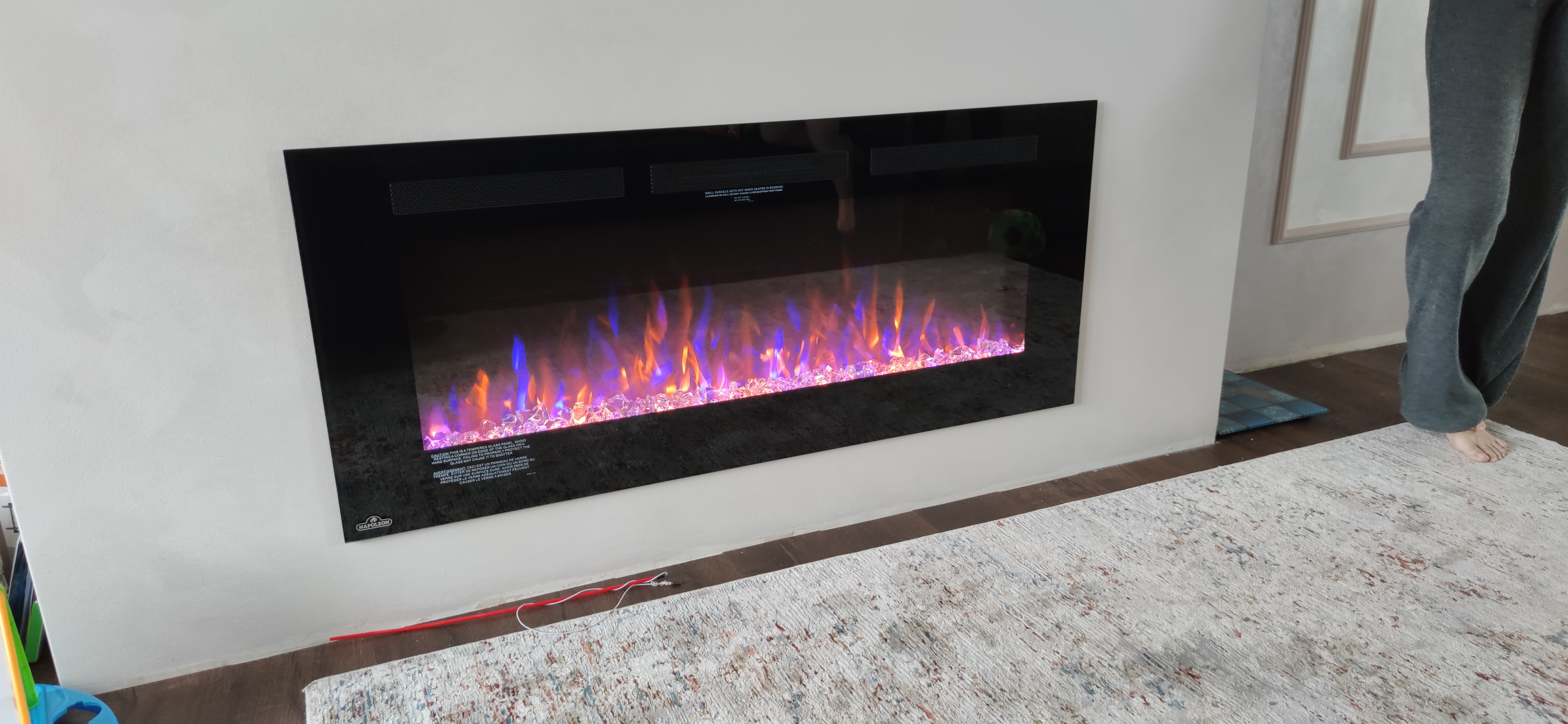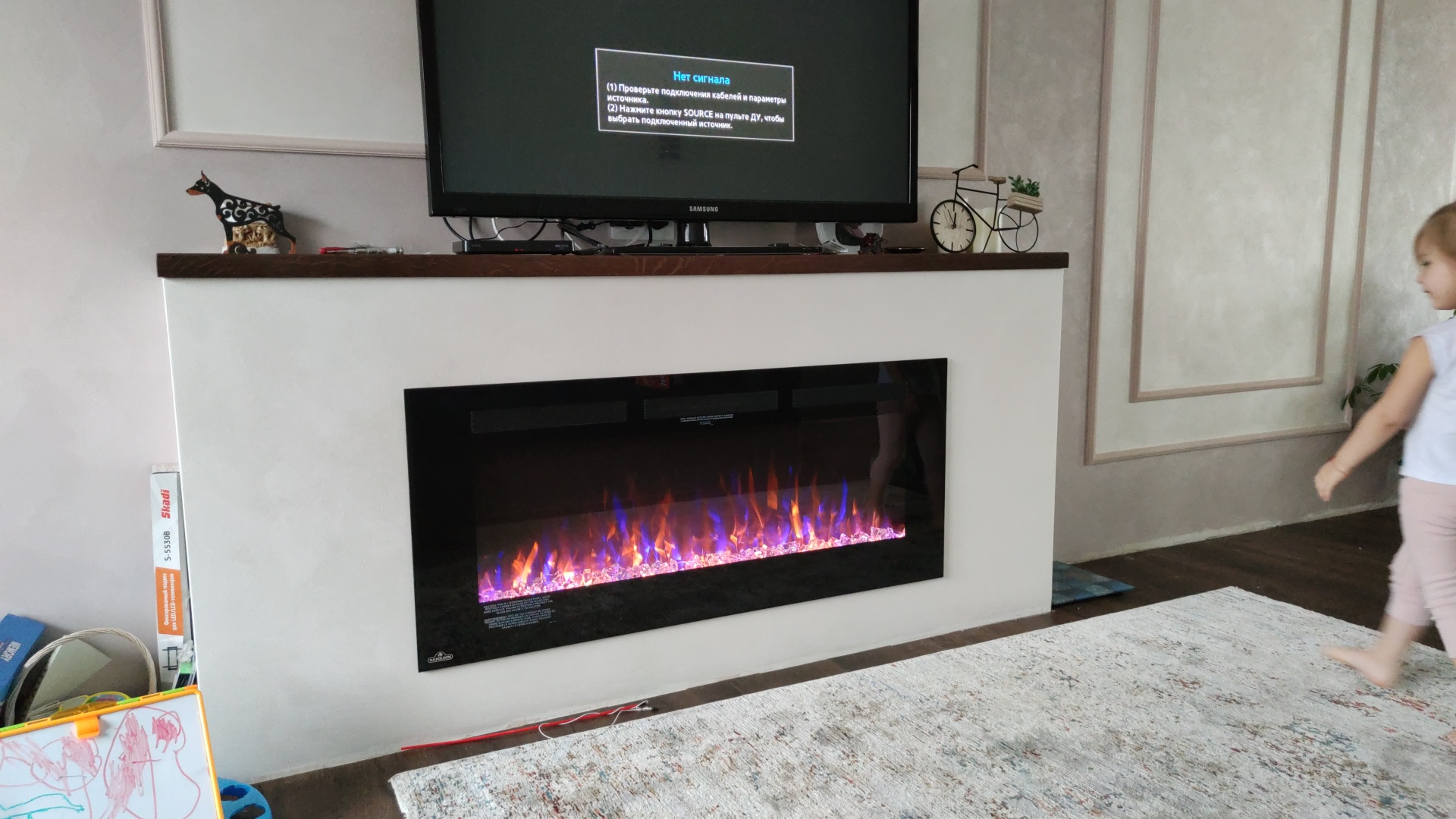 Установили лед электро камин Napoleon в нишу из гипсокартона. Ниша была сделана с полкой для установки телевизора. Электрокамины Napoleon самые популярные камины нашего магазина.
