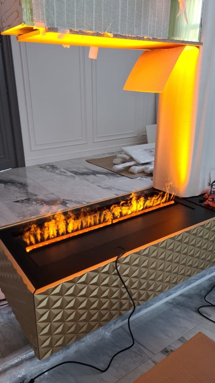 Прислали ему примеры, в итоге ему больше понравились рамки из нержавейки, изготовили за 30 дней и отправили до его адреса, клиент доволен, камин идеально вписался в его цветовую гамму.