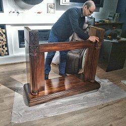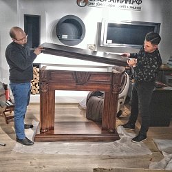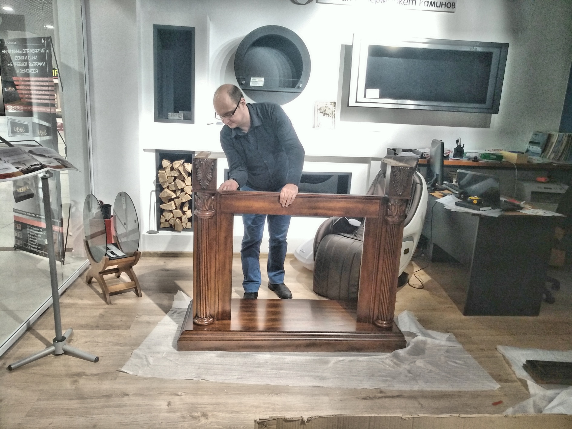 - Мы привези, распоковали, собрали за 15 минут (Портал приходит в разобранном виде. Это очень удобно для транспортировки.) и установили шикарный портал Sheffield из МДФ и натурального шпона цвета грецкий орех.