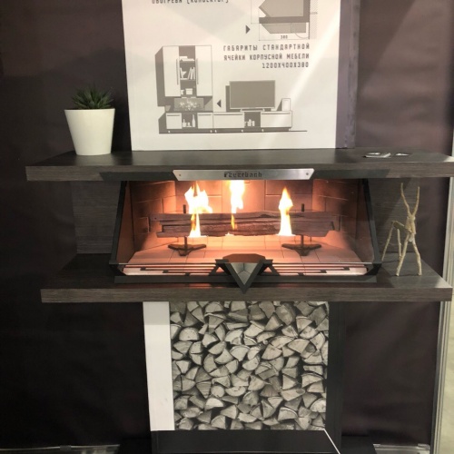 Оптимальные габаритные размеры встраиваемой топки FEUERBACH Type позволяют осуществлять монтаж устройства непосредственно в стандартную ячейку корпусной мебели и появляется возможность эксплуатировать топку без возведения или приобретения специального декоративного портала.